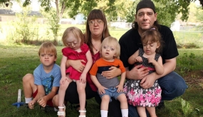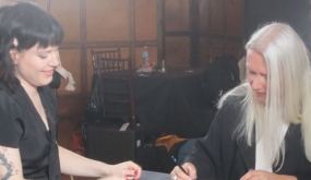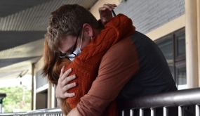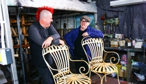 Les curieux s'amassent autour de Simon et Siouxie qui...